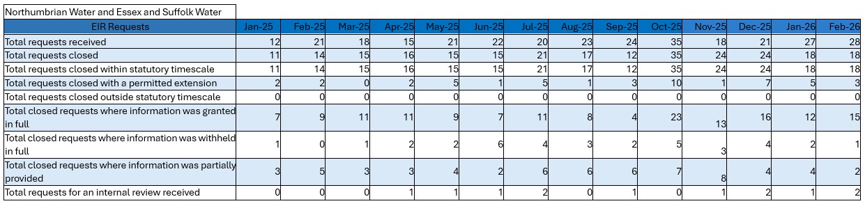 - August 2025 - We are currently working towards a solution to allow us to publish EIR responses to requests for information where they include larger suites of data across multiple attachments. The letter responses will be accessible however until we have a solution in place, the datasets will be available on request.