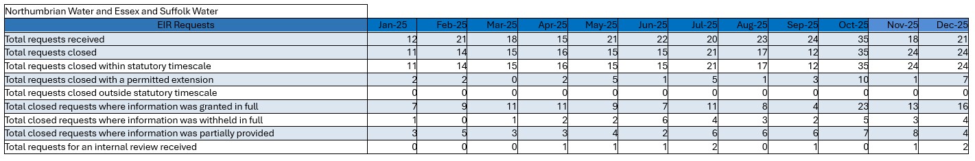 Please note that Northumbrian Water is not subject to the Freedom of Information Act.